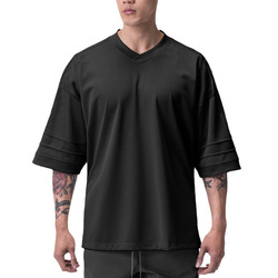 Maglietta da uomo in palestra da Jogging sportiva con scollo a V t-shirt da allenamento traspirante stile Hip Hop metodo di tessitura a maglia