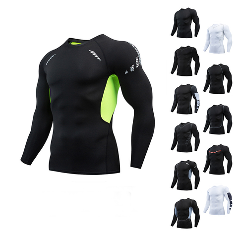Plus Size S-3XL Compressão Poliéster Camiseta Manga Longa T-shirt Fitness Wear Gym Tshirt Roupas Esportivas Homens